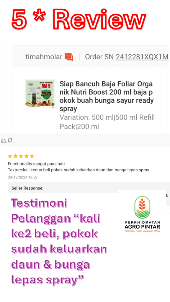 Ini menunjukkan NutriBoost bukan sahaja membantu dari awal, tetapi terus menyokong pertumbuhan hingga fasa berbunga. Pembelian kali kedua membuktikan produk ini benar-benar memberi kesan.