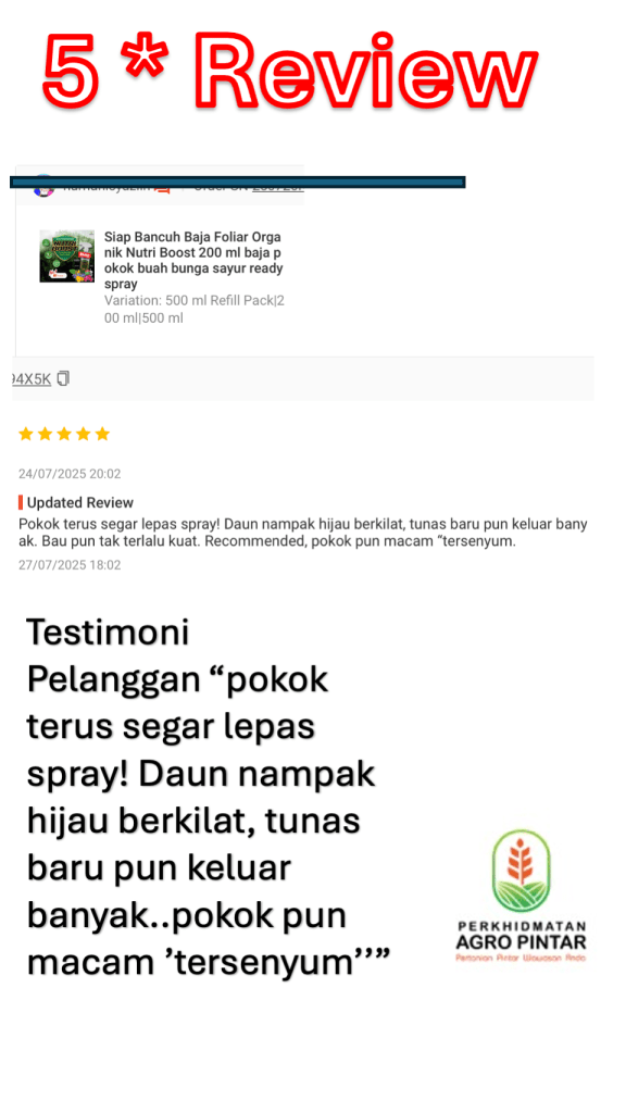 Salah satu tanda paling menggembirakan bila jaga pokok ialah bila kita nampak perubahan yang jelas pada daun dan tunas. Itulah yang dikongsikan oleh pengguna Nutriboost ini selepas menggunakan semburan foliar pada pokok mereka.