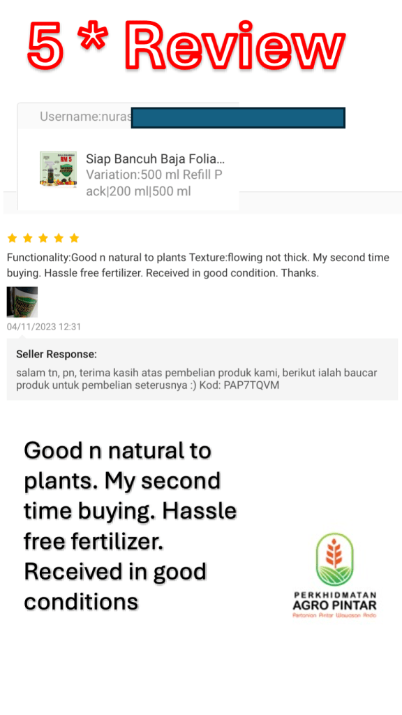 Satu lagi kelebihan yang disebut ialah “hassle free”. Nutriboost tidak perlu dibancuh — hanya goncang dan sembur. Ini menjadikannya pilihan praktikal untuk mereka yang sibuk atau baru bermula dengan hobi tanaman.