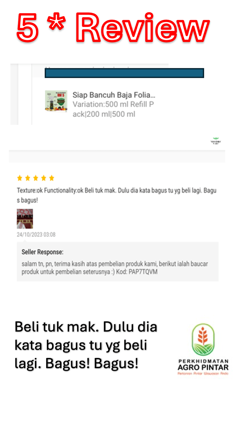 Kami percaya, kualiti tidak perlu diuar-uarkan — ia terbukti melalui hasil. Ramai pengguna kami melihat perubahan positif pada tanaman mereka hanya selepas beberapa kali penggunaan. Pokok lebih hijau, pertumbuhan lebih cepat, dan bunga lebih lebat.