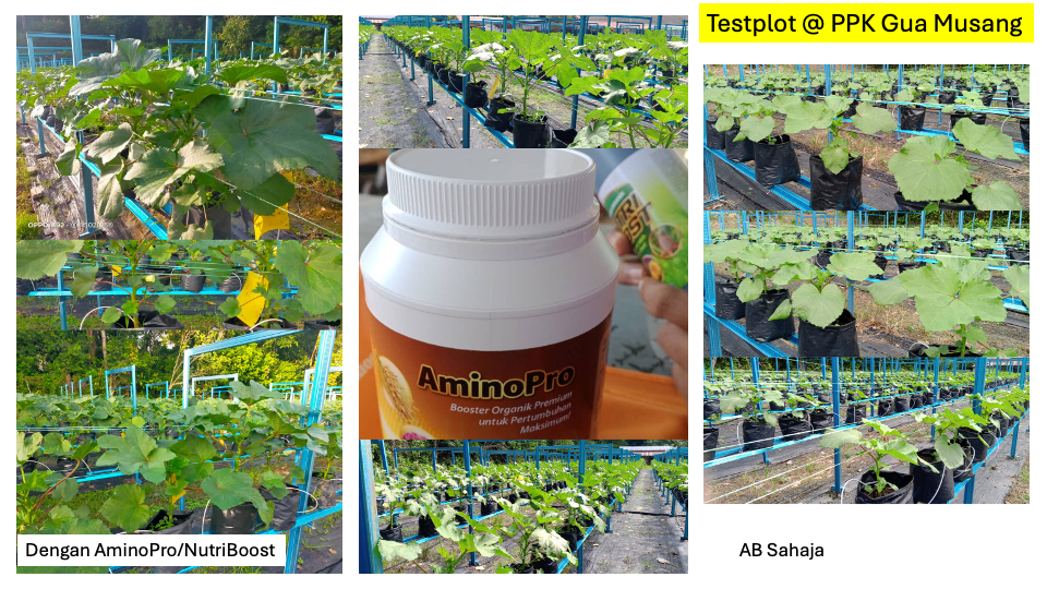 Baru-baru ini, satu plot ujian tanaman bendi (ladyfingers) telah dijalankan bersama PPK Gua Musang untuk menilai keberkesanan dua produk biostimulan iaitu NutriBoost dan AminoPro, berbanding dengan kawalan yang hanya menggunakan baja AB (nutrien hidroponik standard).