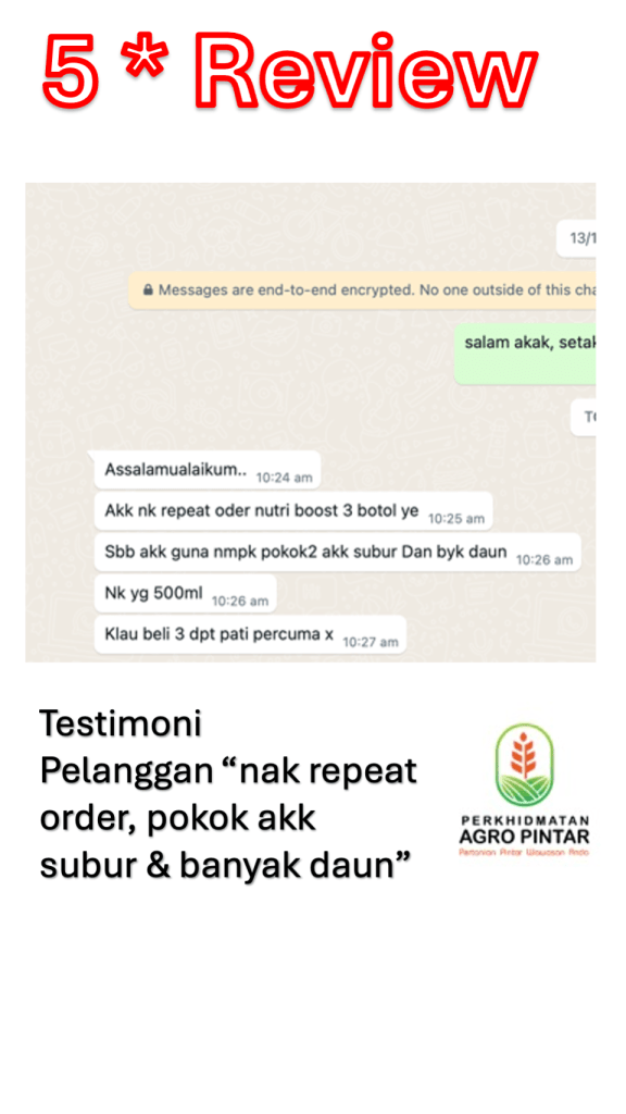Nak semua pokok anda subur, berbunga lebat dan hasil berganda? Cuba NutriBoost Agro Pintar sekarang! Klik sini untuk tempahan atau WhatsApp kami hari ini 🌱🚀