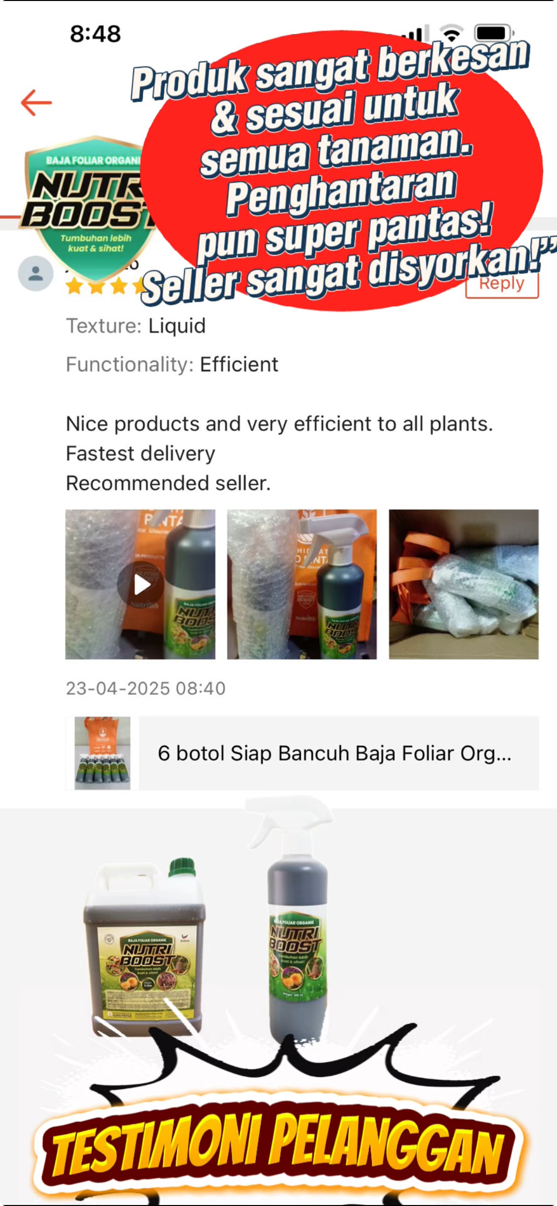 “Nice products and very efficient to all plants. Fastest delivery. Recommended seller.”