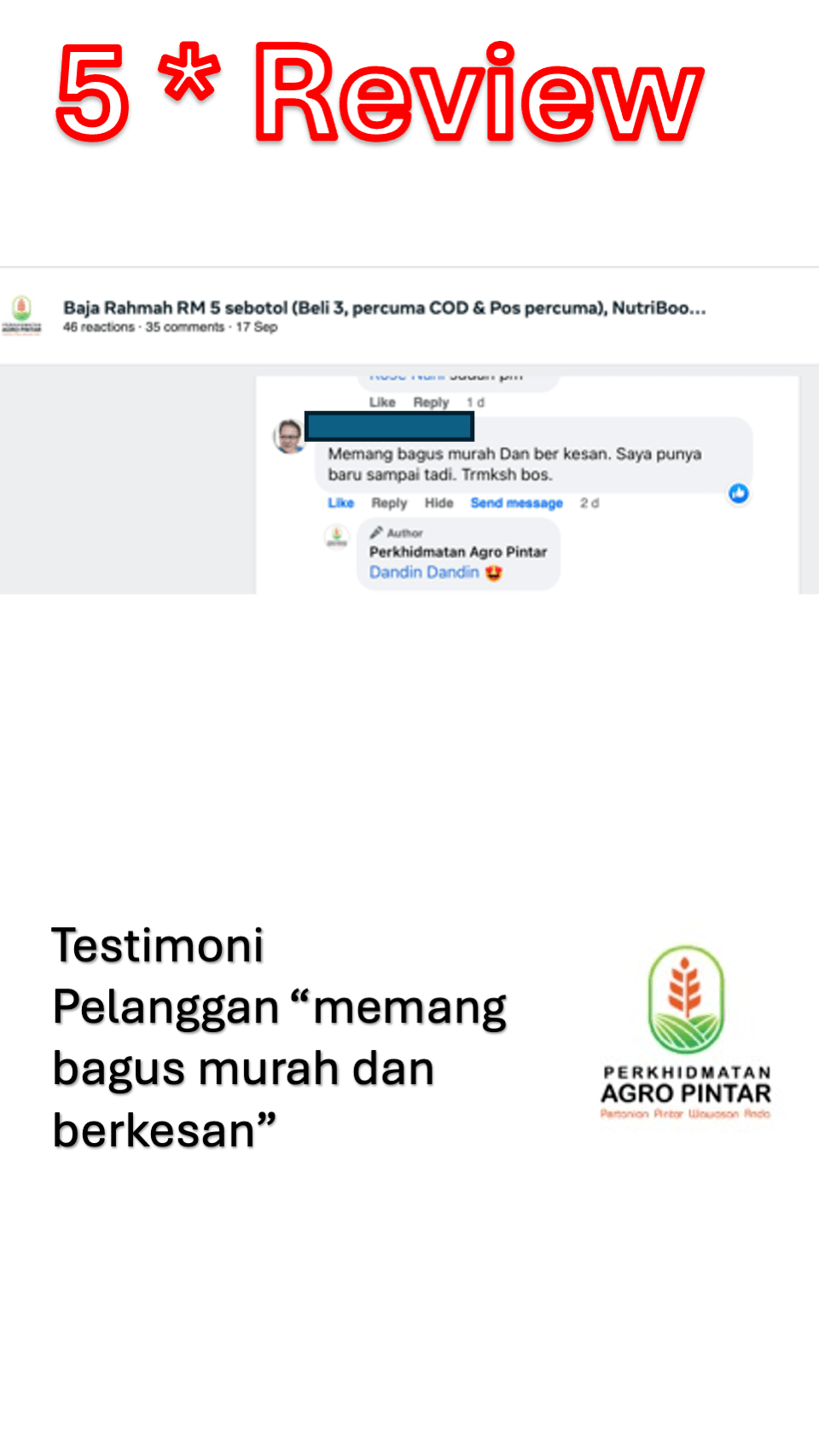 Ramai pelanggan Agro Pintar kini beralih kepada penggunaan baja foliar NutriBoost untuk memastikan tanaman lebih subur dan sihat. Antara perkongsian terbaru daripada pelanggan kami: